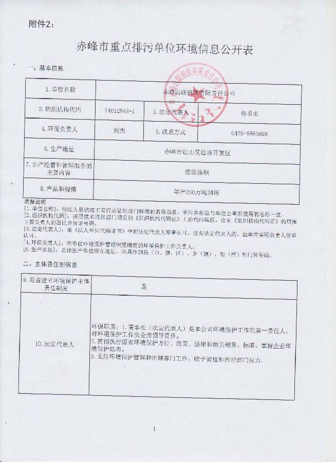 赤峰市重點排污單位環(huán)境信息公開表